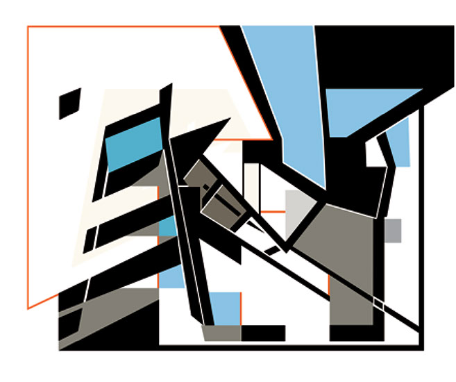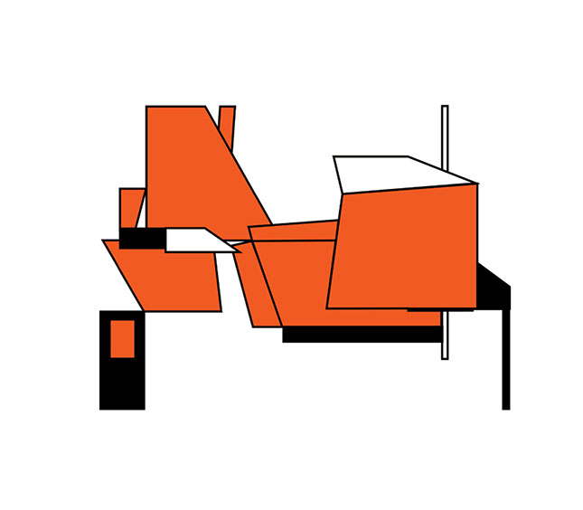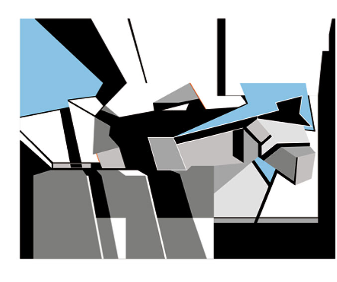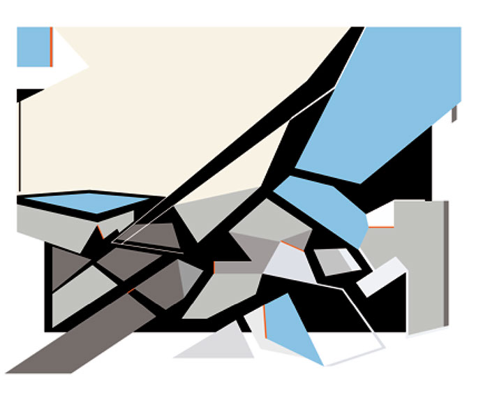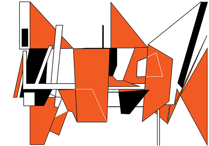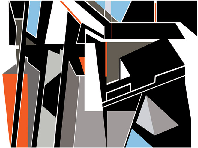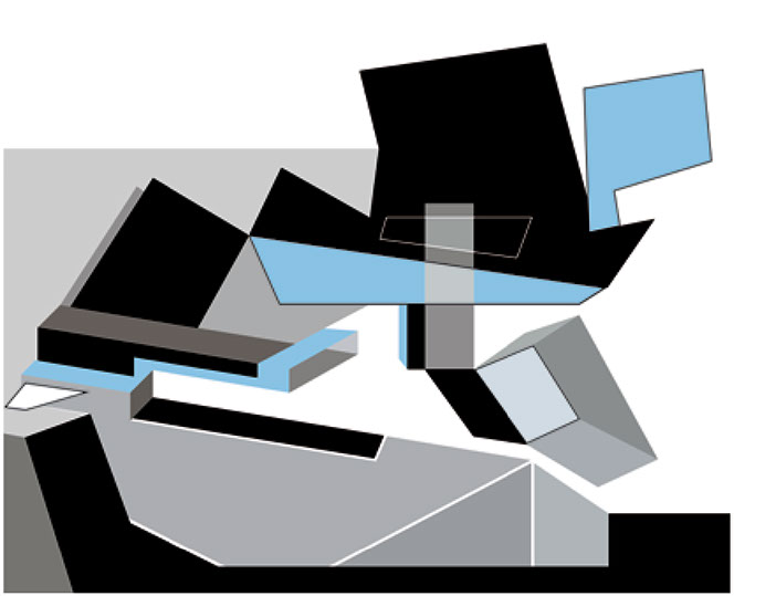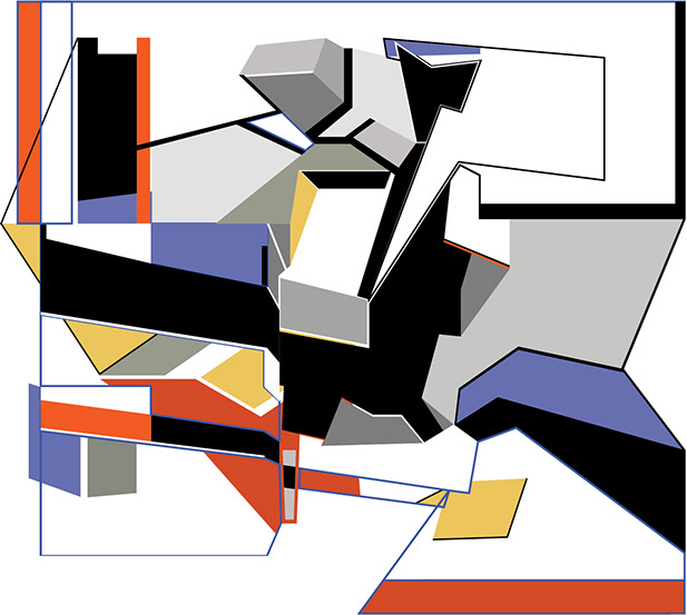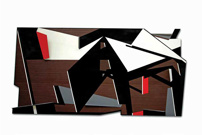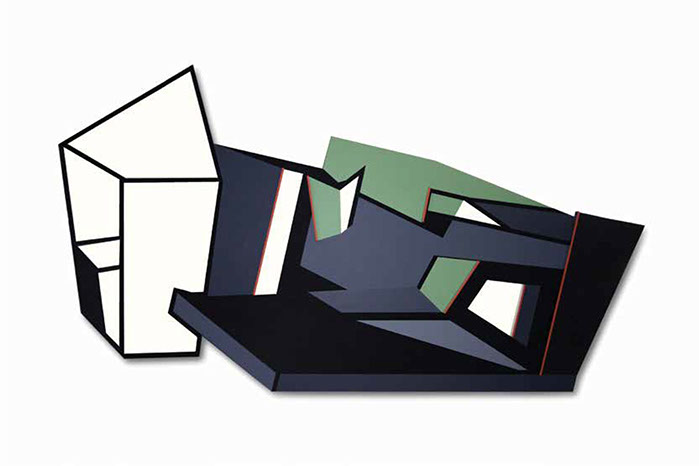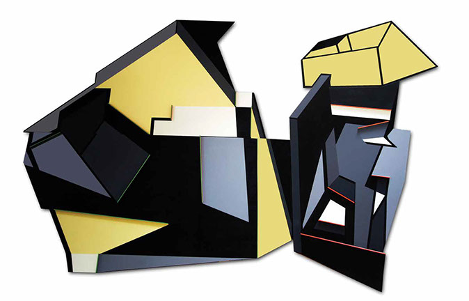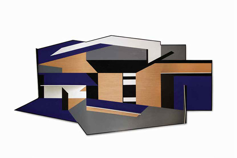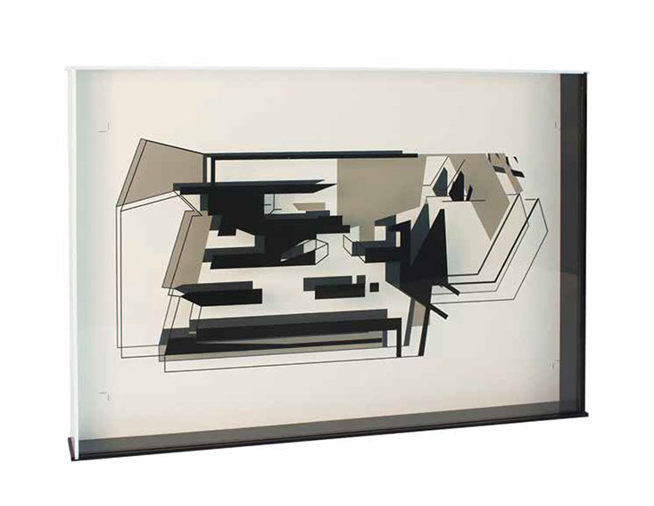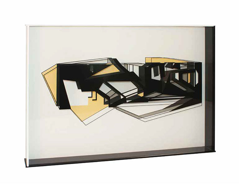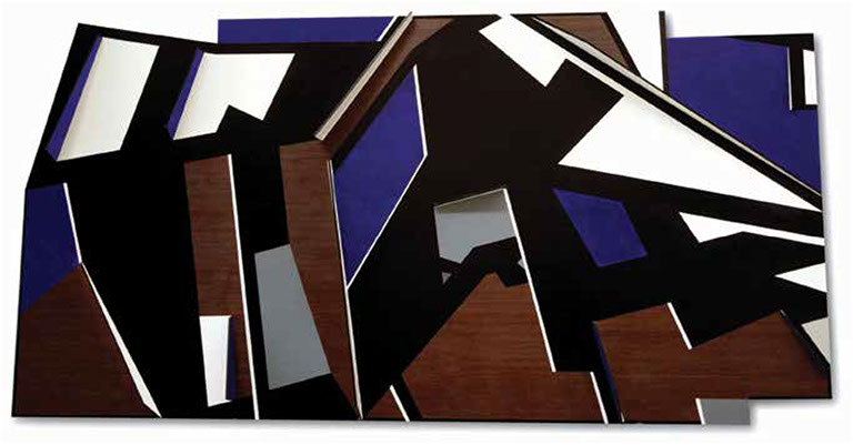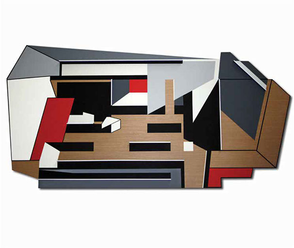 "El fundamento de esta pintura-escultura-objeto es arquitectónico y no sólo como construcción geométrica que incluye ideas de fragmentación, procesos no lineales, procesos de diseño y geometría non euclidiana que se refiere a una interpretación de tiempo y forma en el espacio."